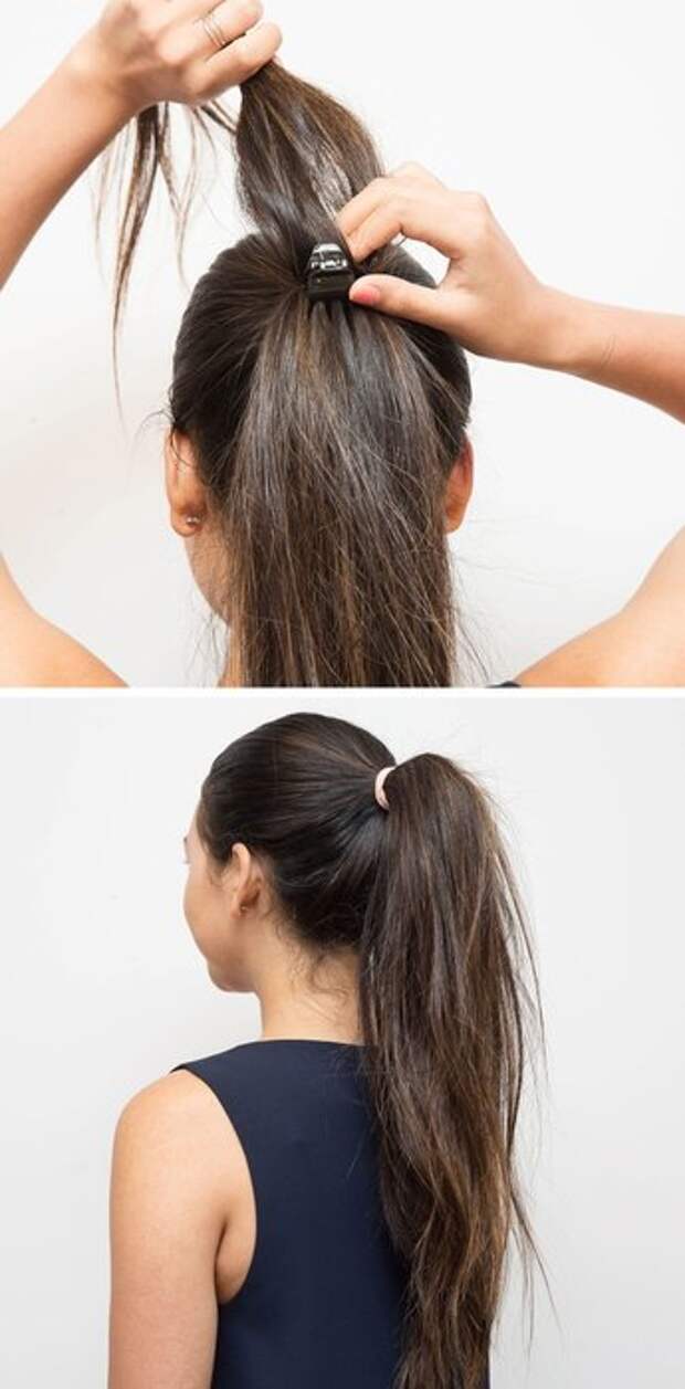 Многие из нас сталкиваются тем, что распущенные волосы кажутся пышными, но стоит только убрать их в хвост — он сразу выглядит каким-то тонким и непрезентабельным… Есть решение. Сначала делаешь маленький хвостик на макушке, аккуратно отделив этот«островок» от остальной массы волос. Сверху на этот хвостик прикрепляешь накладную прядь (только не переборщи!), а затем поднимаешь все оставшиеся волосы и завязываешь хвост, как обычно. Легко и быстро!